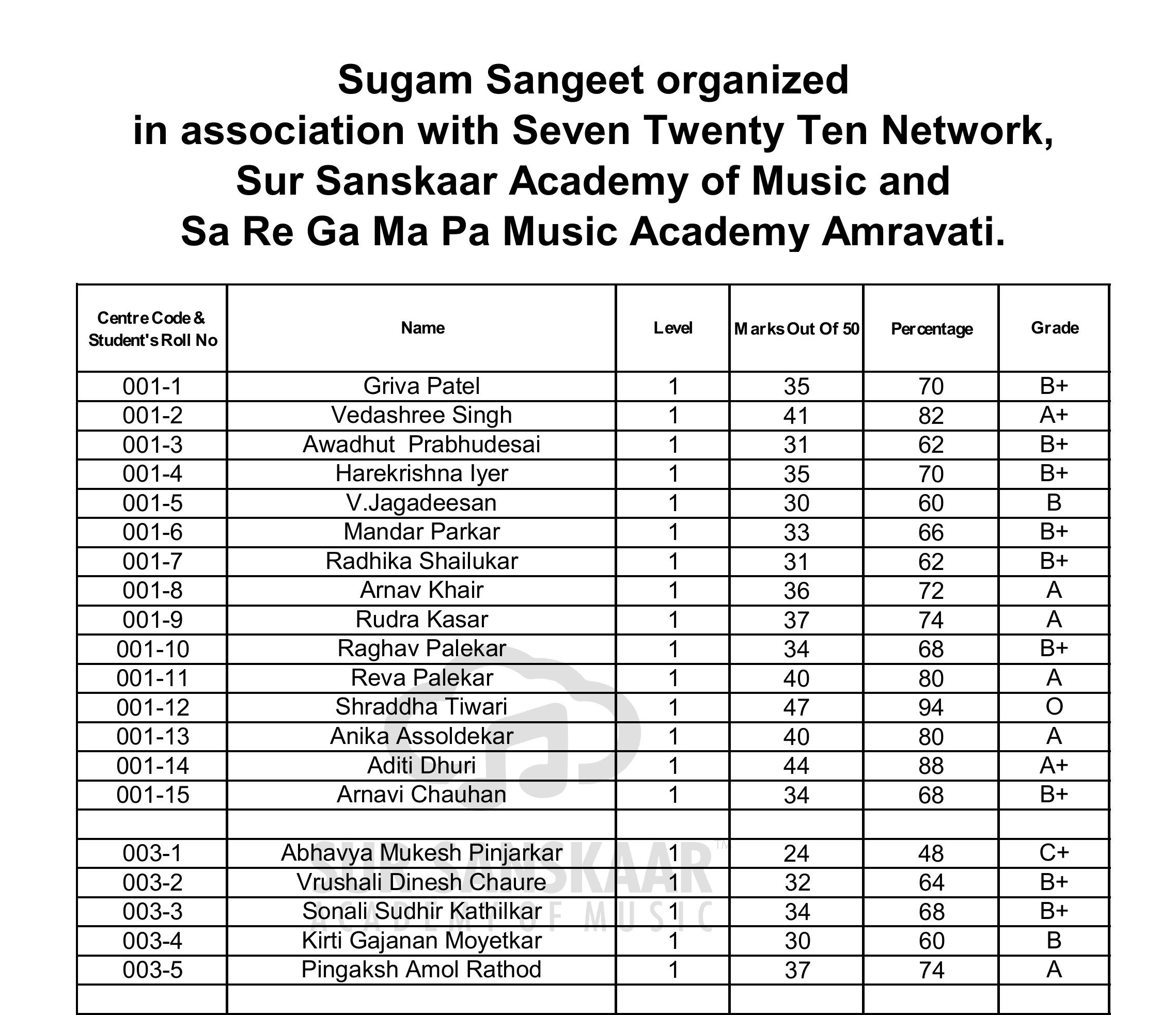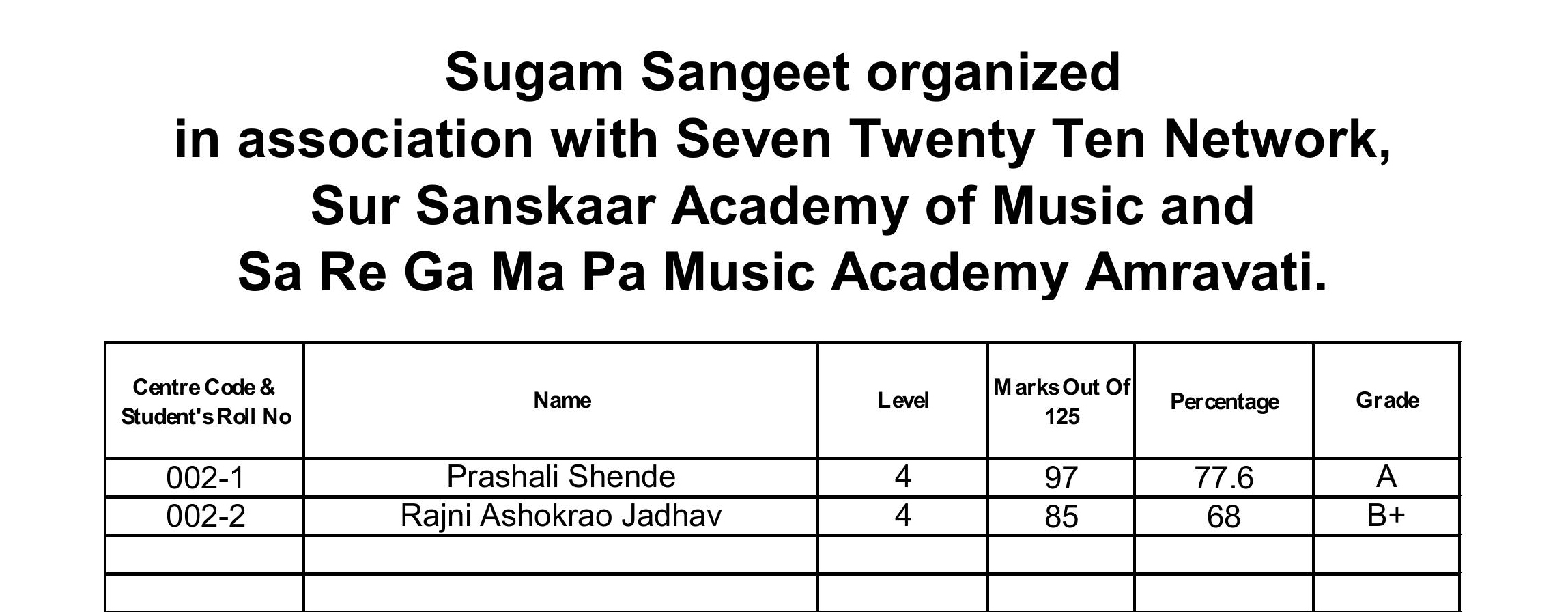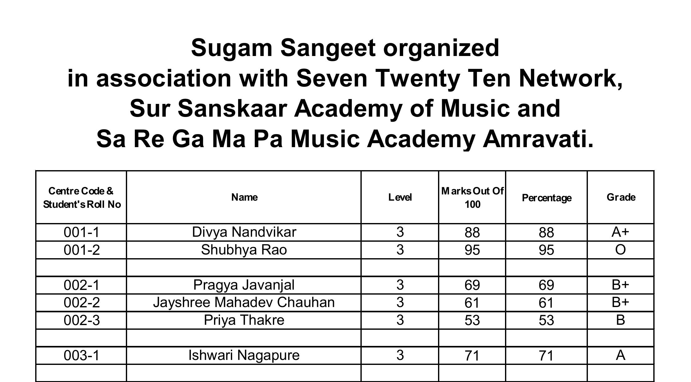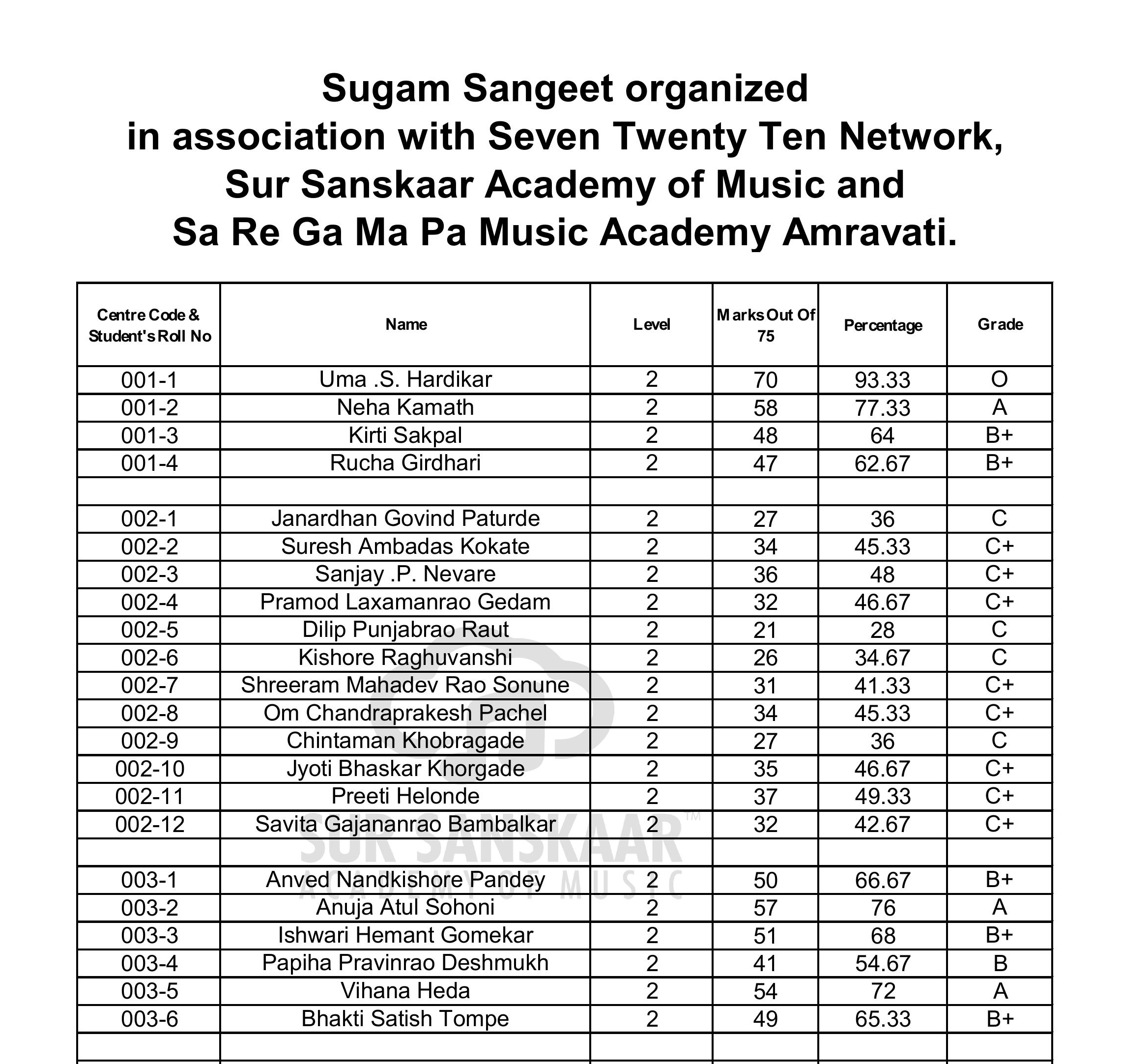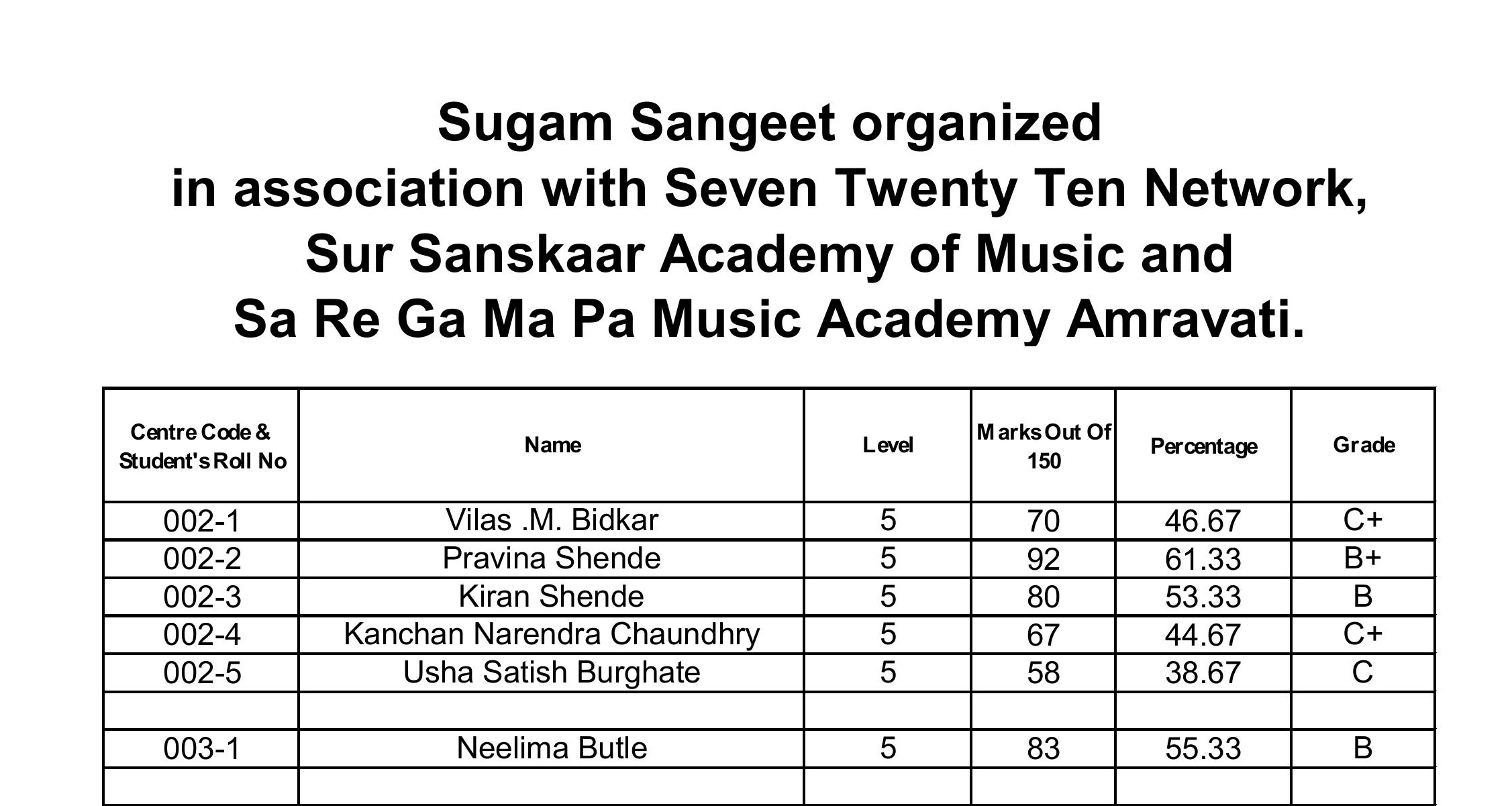 LIGHT MUSIC EXAM RESULTS 2026